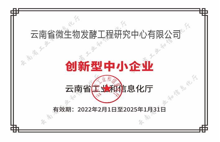 創新型中小企業 日期:2024-05-13 分類:專利榮譽 瀏覽次數:665 views 公司被云南省工業和信息化廳認定為創新型中小企業 上一篇: 云南省科技型中小企業 下一篇: 朱明軍專家基層科研工作站 相關文章 云南省科學技術獎勵 AAA級信用企業、AAA級資信等級證書 朱明軍專家基層科研工作站 云南省科技型中小企業 昆明市知識產權試點企業 云南省省級成長型中小企業 昆明市重點科技服務機構 菌種基因工程改造技術平臺